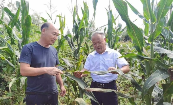 惠軍濤(右)為種糧大戶診斷玉米病害。