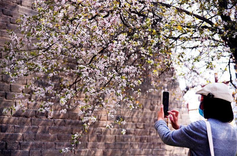 3月15日,春風(fēng)送暖,西安城墻下紫葉李競(jìng)相綻放,粉白的花朵綴滿(mǎn)枝頭,與古樸厚重的城墻相映成趣,勾勒出一幅“花映古城”的春日盛景,吸引眾多市民游客前來(lái)踏青賞花、打卡留念。 (前方+客戶(hù)端 西安報(bào)業(yè)全媒體記者 王健 攝)