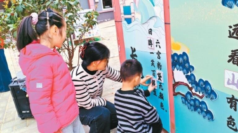 小朋友在家長的陪伴下參加詩畫長安拼圖游戲?!。ㄊ茉L單位供圖)