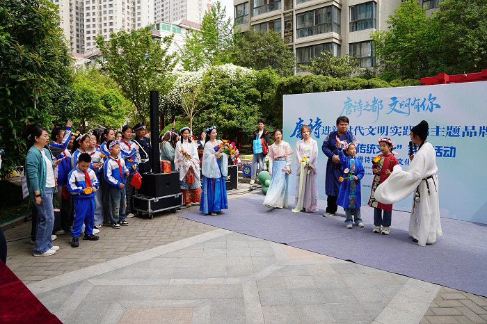 本次“唐詩之都·文明有你”活動由中共西安市委宣傳部、中共西安市委文明辦主辦,西安市新時代文明實踐指導(dǎo)中心、中共西安市市蓮湖區(qū)委宣傳部、中共西安市蓮湖區(qū)委文明辦、《華商報》社承辦,西關(guān)街道黨工委辦事處、桃園社區(qū)新時代文明實踐站協(xié)辦。活動不僅讓居民在家門口領(lǐng)略了唐詩的永恒魅力,更通過沉浸式體驗激發(fā)了大家對中華優(yōu)秀傳統(tǒng)文化的認同與熱愛。接下來,系列活動還將以詩詞互動、情景再現(xiàn)、主題沙龍等豐富形式,推動唐詩走出書本、融入日常。(西安市新時代文明實踐指導(dǎo)中心)