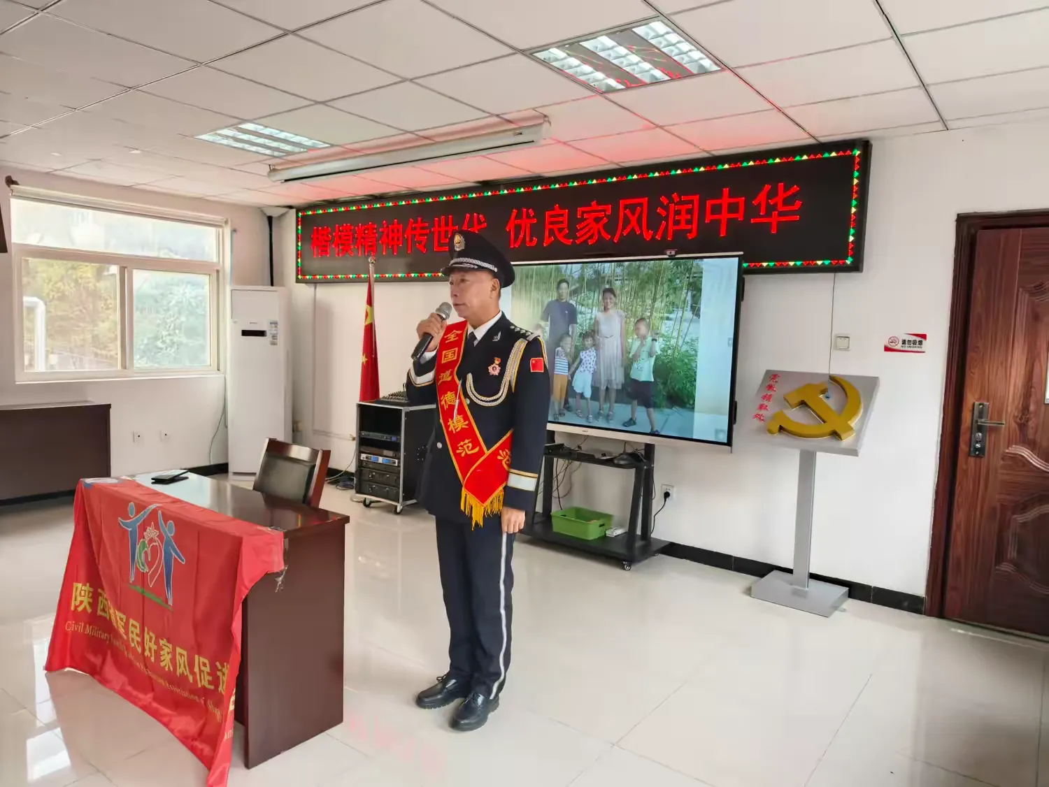 活動(dòng)伊始,現(xiàn)場(chǎng)便洋溢著莊嚴(yán)而溫馨的氛圍。陜西省軍民好家風(fēng)促進(jìn)會(huì)副會(huì)長(zhǎng)、陜西慈善協(xié)會(huì)紅領(lǐng)巾志愿服務(wù)隊(duì)負(fù)責(zé)人張愛芳女士登臺(tái)致辭,她以真摯的話語(yǔ),深刻闡述了楷模與家風(fēng)的內(nèi)涵,為整場(chǎng)活動(dòng)注入了深厚的精神力量。