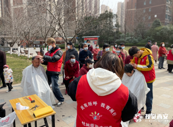 3月1日,雁塔區(qū)杜城街道竹園嘉苑社區(qū)院子里可謂是熱鬧非凡,理發(fā)、義診、磨刀磨剪子、盲人按摩……一項項志愿服務(wù)吸引了不少居民參與其中。