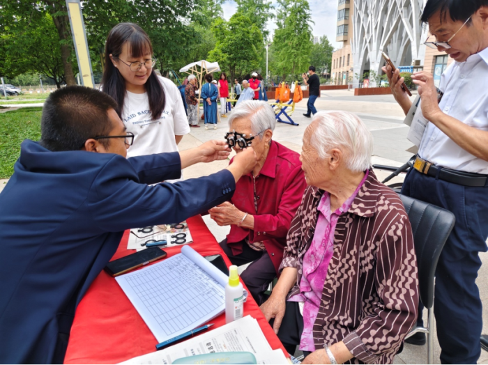 前來參與活動的老年人絡(luò)繹不絕。在測光配鏡區(qū),工作人員認(rèn)真檢查老人的眼部情況,細(xì)致了解老人日常用眼習(xí)慣,并向前來配鏡的老年人普及宣傳用眼、護(hù)眼等健康知識。