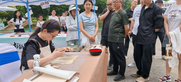 華夏幸福里廣場(chǎng)主會(huì)場(chǎng)內(nèi),20余座主題展臺(tái)錯(cuò)落有致,構(gòu)建起兼具歷史厚度與時(shí)代溫度的閱讀矩陣。舊書(shū)展臺(tái)宛如時(shí)光隧道,讓觀眾觸摸到真實(shí)的歷史脈搏;新書(shū)展臺(tái)則聚焦當(dāng)代閱讀需求,全面覆蓋全齡段閱讀需求;紅色文創(chuàng)展臺(tái),讓紅色文化以更鮮活的方式融入人們?nèi)粘I?;互?dòng)體驗(yàn)展臺(tái)成為人氣焦點(diǎn)。拓印體驗(yàn)區(qū)群眾在專(zhuān)業(yè)老師指導(dǎo)下,用宣紙與拓包復(fù)刻碑刻文字。書(shū)法寫(xiě)作區(qū),愛(ài)好者們揮毫臨摹《蘭亭集序》;最后,在互動(dòng)捐贈(zèng)留言展臺(tái)前,市民紛紛捐贈(zèng)閑置書(shū)籍,留言卡上寫(xiě)滿(mǎn)“讓知識(shí)流動(dòng)”等寄語(yǔ)。