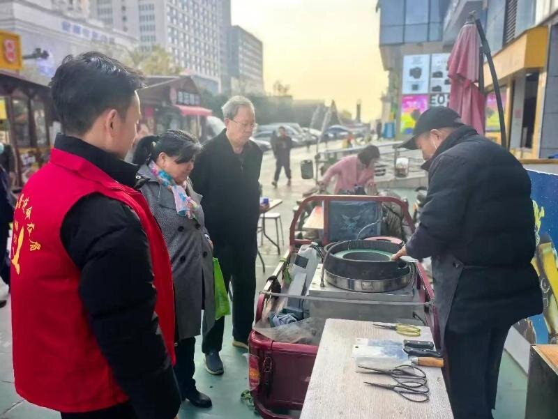 活動現(xiàn)場,五大服務(wù)區(qū)域功能明確,人氣十足。西北有色醫(yī)院專家團隊提供免費健康咨詢與診療服務(wù);阿鑫美發(fā)志愿者的理發(fā)攤位前居民有序排隊;專業(yè)的磨刀師傅細心打磨各類刀具;文藝路派出所民警攜手長安銀行工作人員,通過案例講解普及反詐知識,守護居民“錢袋子”;社區(qū)政策咨詢臺則圍繞三孩生育補貼、垃圾分類、城鄉(xiāng)居民基本醫(yī)療保險等最新政策,為前來詢問的居民進行詳細解答與流程指導(dǎo)。