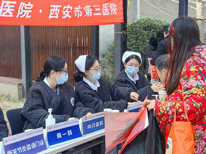 義診專區(qū)化身"健康驛站",來自西安市第三醫(yī)院的醫(yī)療團(tuán)隊(duì)為居民提供血壓測量、健康咨詢等服務(wù),針對冬季養(yǎng)生、慢性病管理等問題耐心解答。醫(yī)護(hù)人員還特別制作了"健康錦囊"宣傳冊,將科學(xué)養(yǎng)生知識融入趣味漫畫,讓健康關(guān)懷既專業(yè)又貼心。