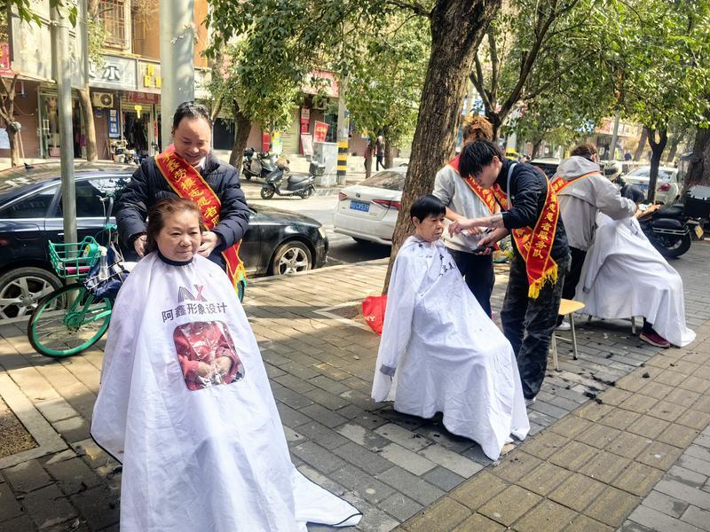 義剪志愿者為居民理發(fā)。