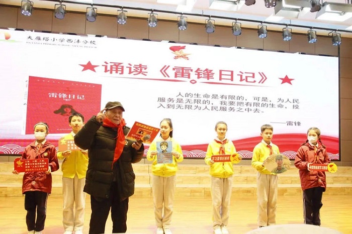 大雁塔小學(xué)教育集團(tuán)開展“驛路梨花處處開,雷鋒精神代代傳”主題隊(duì)會(huì)。特邀全國(guó)優(yōu)秀志愿輔導(dǎo)員張景衡老師、陜西省道德模范、愛心大使邱華老師和中醫(yī)博士、秦腔表演藝術(shù)家陳金鋒老師參與本次活動(dòng)。