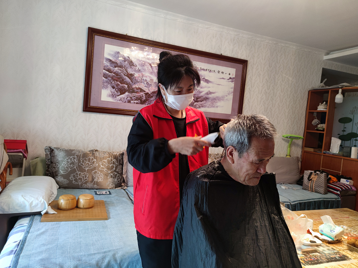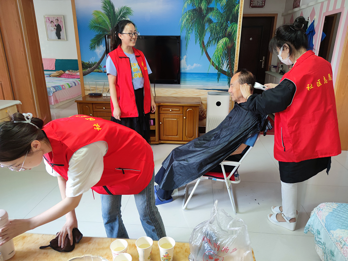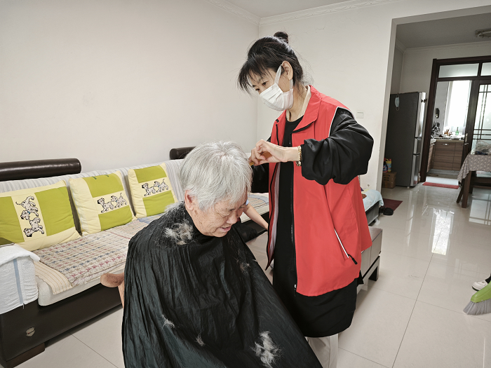 理發(fā)的同時,社區(qū)志愿者還仔細地將老人們的家里也打掃得干干凈凈,并陪伴老人一起拉家常,聆聽他們日常生活中的趣事,了解他們生活中遇到的困難,將這些都一一記錄下來,想方設法為老人們排憂解困。臨走時,老人們常常拉著志愿者的手依依不舍。