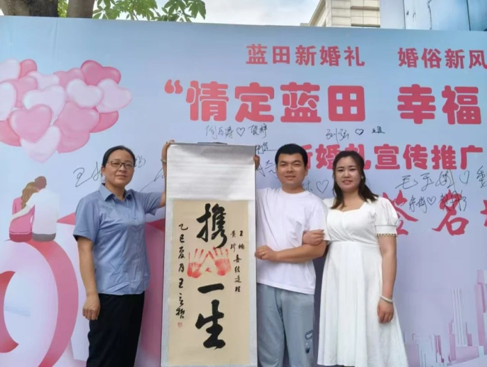 活動(dòng)還邀請(qǐng)了藍(lán)田縣知名書法家為新人書寫家風(fēng)家訓(xùn)。書法家神情專注,現(xiàn)場(chǎng)揮毫潑墨,將一句句蘊(yùn)含著家庭美德和人生智慧的家風(fēng)家訓(xùn)書寫在精美的卷軸上。“家和萬(wàn)事興”“百善孝為先”“尊老愛(ài)幼,和睦相處”……這些家風(fēng)家訓(xùn)不僅是對(duì)新人的美好祝福,更是對(duì)他們未來(lái)家庭生活的殷切期望。新人們接過(guò)牌匾,紛紛表示會(huì)將這份家風(fēng)家訓(xùn)傳承下去,讓家庭更加和睦,讓社會(huì)更加文明。