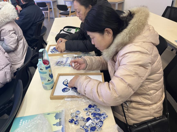 非遺體驗(yàn)也同步開展。居民們憑“長安花”貼紙,自由選擇陶瓷片畫、螺鈿金箔畫、宋錦珍珠包三項(xiàng)手作體驗(yàn)。非遺老師耐心細(xì)致地講解制作技巧,手把手指導(dǎo)大家進(jìn)行創(chuàng)作,體驗(yàn)著非遺技藝的精妙,感受中華優(yōu)秀傳統(tǒng)文化的博大精深。