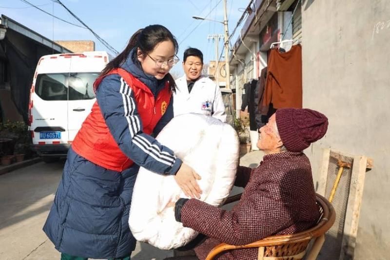 當(dāng)日下午,室外氣溫僅有8℃,新筑街道楊賀村村民曲振坤家中卻是暖意融融。由新筑社區(qū)衛(wèi)生服務(wù)中心家庭醫(yī)生、長(zhǎng)安號(hào)志愿者組成的服務(wù)隊(duì),帶著嶄新的被子、枕頭走進(jìn)了這位92歲老人的家。
