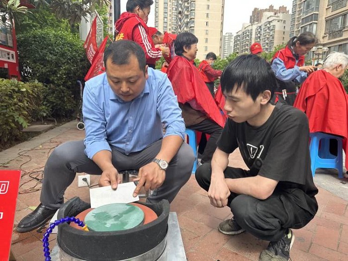 磨刀攤位前居民絡(luò)繹不絕,師傅非常專業(yè)地用磨刀器仔細打磨剪刀和菜刀,不一會兒就把刀打磨得锃亮。居民們紛紛表示:“現(xiàn)在外面很少能見到磨刀師傅了,社區(qū)提供的服務(wù)實在太方便了?!?/font>