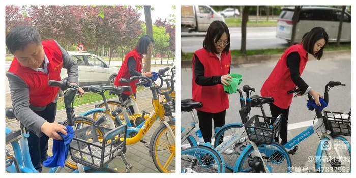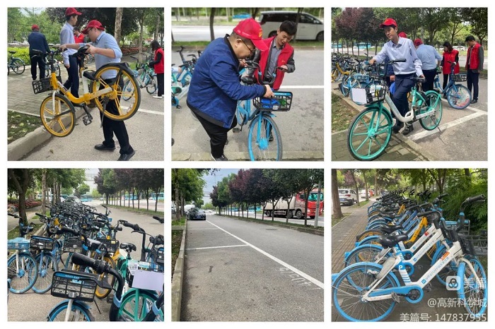 在綠色出行的倡導(dǎo)下,自行車騎行十分普遍,為愛護(hù)公共交通工具,打造干凈整潔的城市面貌,科學(xué)城志愿者們對公司周邊亂停擺放的共享單車進(jìn)行規(guī)整,并整齊搬送到規(guī)定停車區(qū)域。