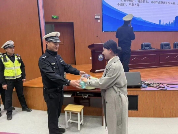 活動現(xiàn)場,民警結合老年群體出行特點,共同分享“穿亮色衣服提高辨識度”“將頭盔放置門口提醒出門佩戴”等實用交通安全小技巧,語言通俗易懂、貼近生活;知識有獎問答環(huán)節(jié)中,網格民警協(xié)助引導老年人參與搶答,圍繞交通法規(guī)、出行注意事項等內容耐心答疑,答對者獲贈印有交通安全標語的實用盆具及安全頭盔,讓安全禮品成為出行“護身符”。