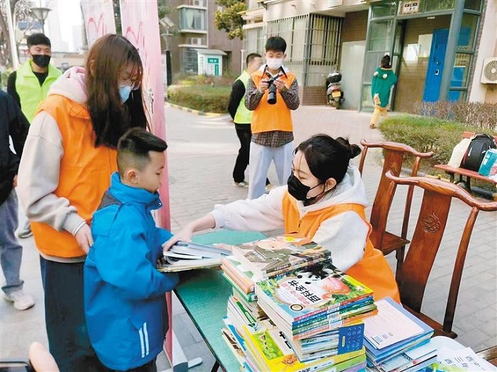 陜西省圖書館向社區(qū)捐贈了各類圖書,同時向轄區(qū)兒童進(jìn)行現(xiàn)場一對一捐贈,孩子和家長們爭先恐后去領(lǐng)書,拿到書的小朋友迫不及待地在現(xiàn)場打開閱讀。