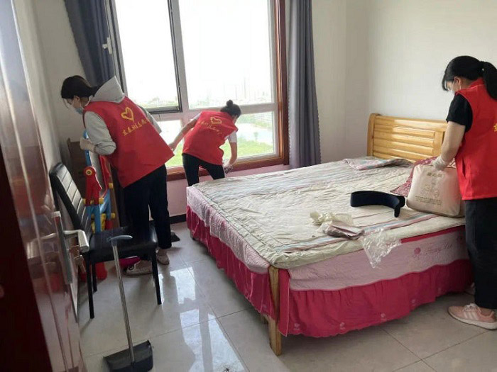 當天上午,工作人員帶著清潔工具來到老人家中開展大掃除,老兩口看到工作人員特別高興。大家手持掃把、抹布等工具,幫助他們全面打掃房屋、擦拭門窗桌椅、整理生活物品并清洗衣物。