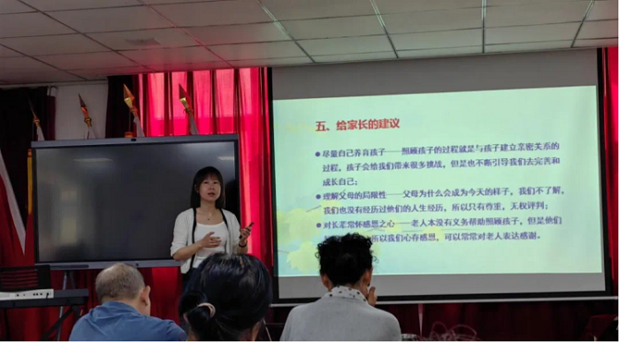 5月16日,大雁塔街道青龍社區(qū)婦聯邀請雁塔區(qū)婦聯家庭教育指導中心主任、愛德社會服務中心高級講師、高級家庭教育講師、高級心理咨詢師周潔為轄區(qū)居民帶來《隔代教養(yǎng)—愛的智慧代代傳》的專題講座。