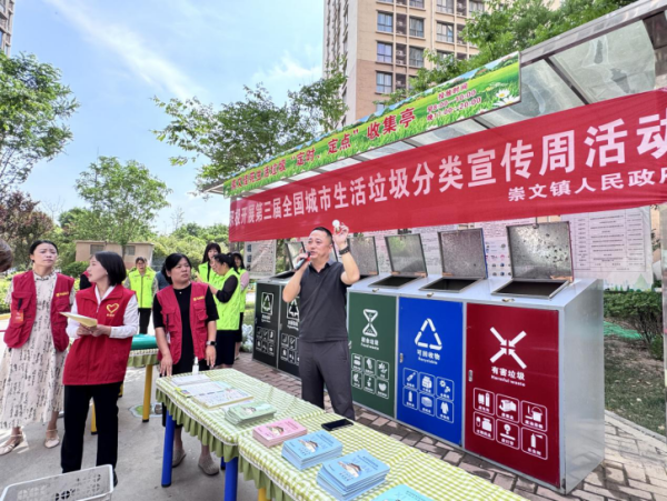 崇文鎮(zhèn)崇文佳苑三社區(qū)新時(shí)代文明實(shí)踐站舉辦的垃圾分類嘉年華活動(dòng)成為社區(qū)廣場上的焦點(diǎn)。實(shí)踐站宣講員以“垃圾分類是對地球的責(zé)任”為主題的宣講拉開活動(dòng)序幕。