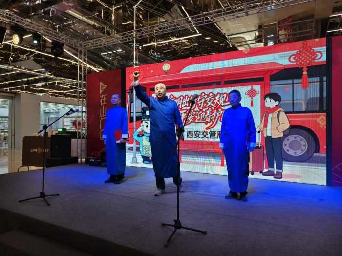 2月10日上午,在年味漸濃、春運出行高峰來臨之際,西安市公安局交通管理支隊雁塔大隊聯(lián)合電子城街道辦事處,在立豐城商場一層中心廣場舉辦“文明出行守交規(guī) 平安迎春護(hù)團(tuán)圓”交通安全主題宣傳活動,以文藝宣講、互動體驗、新春送福等形式,把平安知識送到群眾身邊。