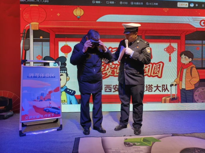 宣傳環(huán)節(jié)中,雁塔交警緊扣轄區(qū)出行特點,圍繞行人過街、非機(jī)動車騎行、“一老一小”安全防護(hù)、酒駕醉駕危害等重點內(nèi)容,播放交通安全宣傳片并開展現(xiàn)場宣講,用真實案例提醒群眾遠(yuǎn)離交通違法?;訂柎瓠h(huán)節(jié)氣氛熱烈,群眾踴躍參與,在答題中鞏固安全知識、贏取新春禮品?,F(xiàn)場設(shè)置酒駕模擬體驗區(qū),民警全程指導(dǎo),讓參與者直觀感受酒駕風(fēng)險,筑牢“喝酒不開車、開車不喝酒”的安全底線。