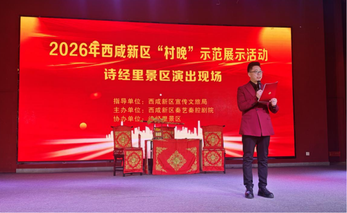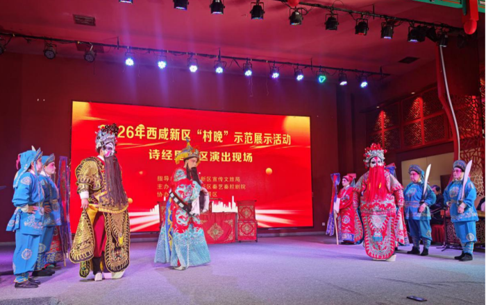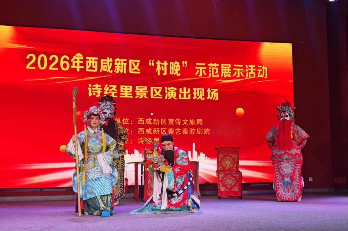 時(shí)近新春,年味漸濃。西咸新區(qū)詩(shī)經(jīng)里景區(qū)內(nèi)暖流涌動(dòng)、秦聲激越。2月9日,2026年西咸新區(qū)“村晚”示范展示活動(dòng)在這里精彩上演。本次活動(dòng)由西咸新區(qū)宣傳文旅局指導(dǎo),西咸新區(qū)秦藝秦腔劇院主辦,詩(shī)經(jīng)里景區(qū)協(xié)辦,通過(guò)三出膾炙人口的秦腔經(jīng)典折子戲,為當(dāng)?shù)厝罕娂熬皡^(qū)游客獻(xiàn)上了一場(chǎng)高水準(zhǔn)的傳統(tǒng)藝術(shù)盛宴,讓古老秦腔綻放時(shí)代光華。