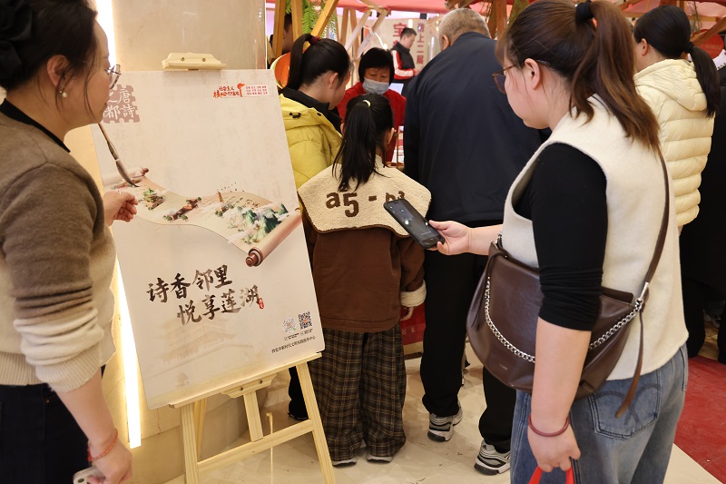 活動(dòng)現(xiàn)場(chǎng),“唐詩(shī)之都”小程序推廣展位前人頭攢動(dòng),紛紛掃碼關(guān)注即可領(lǐng)取糖葫蘆、手工小花燈等精美小禮品?!斑@個(gè)小程序內(nèi)容特別豐富,既能學(xué)習(xí)唐詩(shī)典故,又能了解詩(shī)詞里的傳統(tǒng)節(jié)俗,非常有意義?!眲傤I(lǐng)取到禮品的市民劉先生向同伴展示。