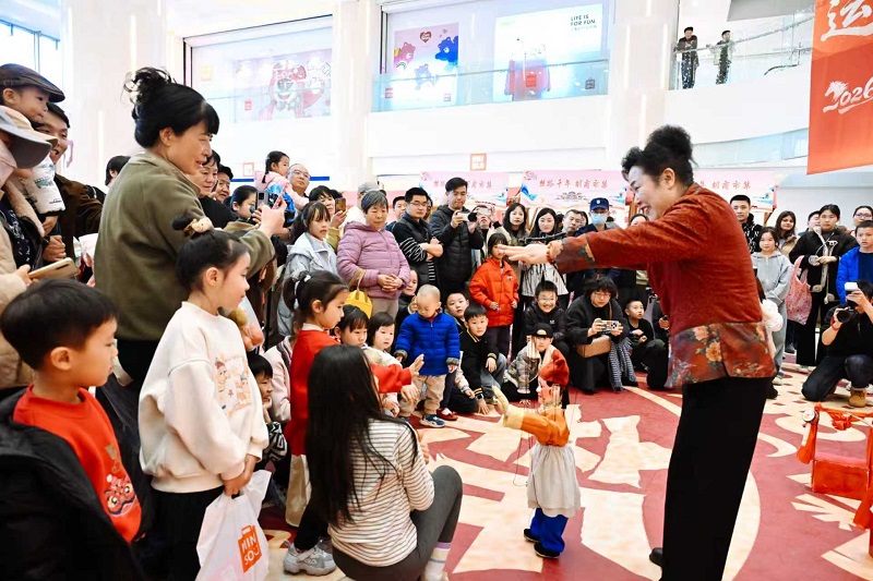 非遺皮影戲與提線木偶表演區(qū)更是人氣爆棚,圍滿了駐足觀看的市民,尤其是小朋友們?nèi)紨D在最前排,仰著圓圓的小臉看得聚精會(huì)神、目不轉(zhuǎn)睛。隨著皮影傳承人指尖靈活翻轉(zhuǎn),幕布上的皮影人物騰挪跳躍、栩栩如生,靈動(dòng)傳神的提線木偶舉手投足惟妙惟肖,引得孩子們興奮地拍手歡呼,不住點(diǎn)頭稱(chēng)贊,大人們則紛紛掏出手機(jī),不停按下快門(mén),記錄下這一幕幕精彩瞬間,贊嘆聲與歡笑聲在現(xiàn)場(chǎng)久久回蕩?!暗谝淮芜@么近距離看提線木偶,太神奇、太好看了!”大學(xué)生小王一邊拍攝視頻,一邊由衷感嘆。
