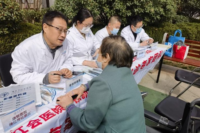 金域華府社區(qū)聯(lián)合西安市紅會醫(yī)院專家醫(yī)療隊(duì)在小區(qū)內(nèi)開展“義診暖人心”志愿服務(wù)活動,醫(yī)護(hù)工作者在現(xiàn)場為居民提供咨詢,并為新冠康復(fù)后有后遺癥的相關(guān)人員答疑解惑。