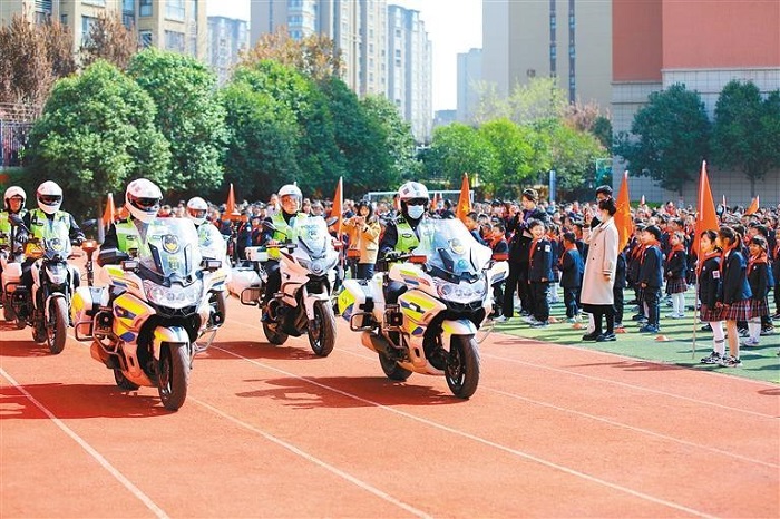 “鐵騎”開(kāi)進(jìn)校園開(kāi)展道路交通安全宣傳 學(xué)校供圖