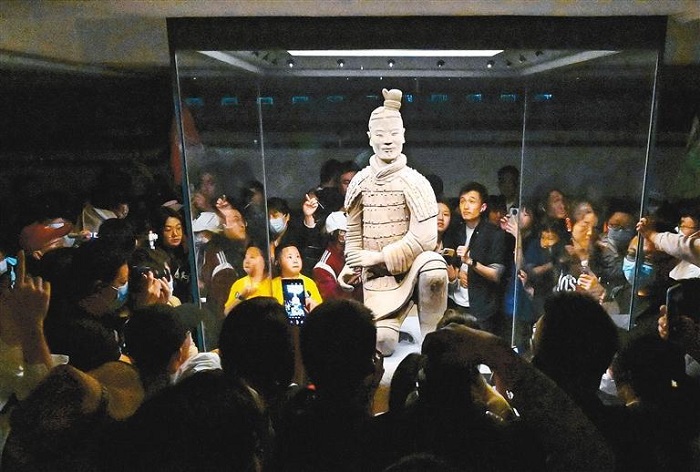 有網(wǎng)友說“西安是傳統(tǒng)文化輸出的天花板”。近年來,西安扎實(shí)加強(qiáng)文化建設(shè),傳承中華優(yōu)秀傳統(tǒng)文化,不斷加大文物保護(hù)力度。西安共擁有各類博物館159座,免費(fèi)開放的數(shù)量達(dá)95%以上,平均每8.28萬人就擁有一座博物館,位居全國前列。