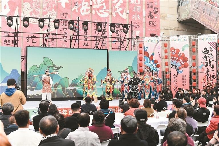 據(jù)了解,本次西安市2025年戲曲進(jìn)鄉(xiāng)村文化惠民暨“西安有戲·幸?;菝瘛奔惺痉饵c(diǎn)展演活動(dòng),由西安市委宣傳部、市文旅局、市財(cái)政局、新城區(qū)政府主辦。啟動(dòng)儀式上,青年演員王鑫、商月月等聯(lián)袂獻(xiàn)唱《生死牌》《金沙灘》等經(jīng)典選段,鏗鏘的唱腔瞬間點(diǎn)燃現(xiàn)場。臺(tái)下,市民們攜親帶友,時(shí)而舉起手機(jī)拍攝記錄,時(shí)而隨著唱腔喝彩鼓掌,樂在其中。現(xiàn)場特別設(shè)計(jì)的互動(dòng)環(huán)節(jié),凸顯“戲曲走近大眾”的理念。