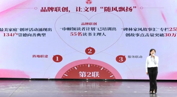 現(xiàn)場(chǎng),《萬家同夢(mèng)》主題宣傳片回顧了西安市去年以來家庭家教家風(fēng)建設(shè)工作情況,生動(dòng)呈現(xiàn)西安市家庭在新時(shí)代的奮進(jìn)姿態(tài)和文明風(fēng)貌?!叭刈蠲兰彝ァ贝砗既A、魏春雁分享了自己的家風(fēng)故事。同時(shí),現(xiàn)場(chǎng)發(fā)布了2024年度家庭教育工作優(yōu)秀案例,一一呈現(xiàn)各單位在家庭教育、兒童關(guān)愛等領(lǐng)域的創(chuàng)新探索成果,為全市家庭教育提供了可借鑒的范本,碑林區(qū)婦聯(lián)、西咸新區(qū)婦聯(lián)代表分享了家校社協(xié)同育人工作經(jīng)驗(yàn)。