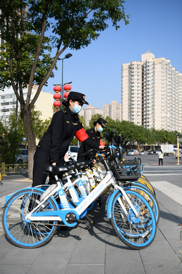在新城區(qū),執(zhí)法人員嚴格按照“集中停放、規(guī)范有序、朝向一致”原則,加強巡查頻次,確保單車可控有序。截至11月初,僅新城區(qū)累計出動執(zhí)法人員650余人次,共清理亂擺放單車及非機動車2500余輛,督促各共享單車公司清運單車3000余輛。