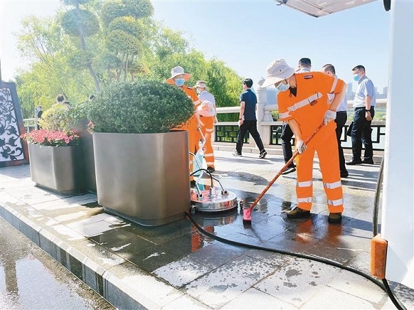 為提高城市潔凈程度,規(guī)范城市管理秩序,優(yōu)化人居環(huán)境品質(zhì),6月28日,市城管局組織各區(qū)縣城管局負責人到曲江新區(qū)觀摩城市清潔和精細化管理工作亮點和好的做法。當日,大家在曲江新區(qū)多地進行了有針對性的觀摩。其中,在曲江池北路,大家實地觀摩了市容環(huán)衛(wèi)車輛實景作業(yè),了解了曲江新區(qū)目前使用的專業(yè)清掃車輛和清掃標準?,F(xiàn)場記者注意到,在對城市家具的保潔中,曲江新區(qū)會結(jié)合家具的材質(zhì)使用不同的專用清潔劑,精細化管理細致入微。