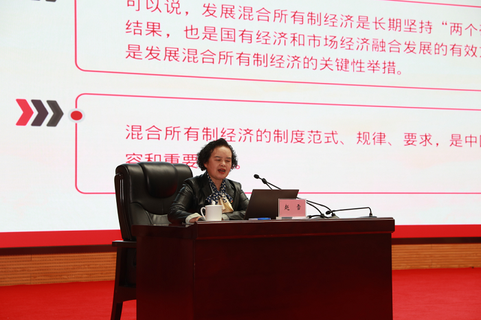 在此次宣講中,趙雪結(jié)合黨的二十大報(bào)告中關(guān)于指引國(guó)有資本和國(guó)有企業(yè)做強(qiáng)做優(yōu)做大等有關(guān)論述,圍繞企業(yè)在改革開(kāi)放中的重大成就;完善中國(guó)特色現(xiàn)代企業(yè)制度;弘揚(yáng)企業(yè)家精神,發(fā)揮企業(yè)家作用;加強(qiáng)管理體系建設(shè),增強(qiáng)企業(yè)戰(zhàn)略管理;企業(yè)強(qiáng)則國(guó)家強(qiáng),企業(yè)興則國(guó)家興等五個(gè)方面,為大家上了一堂題為《以黨的二十大精神為指引 推動(dòng)企業(yè)高質(zhì)量發(fā)展》的精彩輔導(dǎo)課。