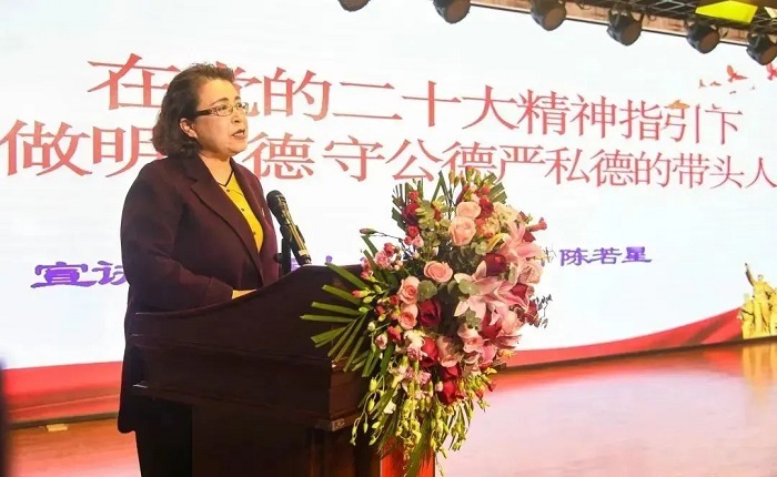 全國(guó)道德模范、中國(guó)好人陳若星為群眾進(jìn)行宣講。(資料圖片)