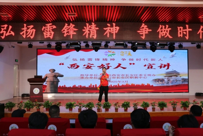 長安區(qū)道德模范、“西安好人”王濤走進(jìn)長安區(qū)職教中心,為全校師生帶來一場主題為“弘揚(yáng)雷鋒精神,爭做時(shí)代新人”的分享會。王濤老師分享了自己在反詐宣傳、扶危助困、搶險(xiǎn)救災(zāi)、助醫(yī)助學(xué)等學(xué)雷鋒公益活動(dòng)中所經(jīng)歷的點(diǎn)點(diǎn)滴滴,深深觸動(dòng)了每一位在場學(xué)生的心靈。