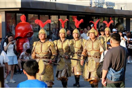 西安城墻“金甲武士”列隊巡城,他們不僅承擔(dān)著西安城墻景區(qū)開城儀式等工作,還是西安文明旅游“引導(dǎo)員”。市委宣傳部文明創(chuàng)建處供圖