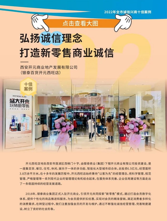 通過典型案例的廣泛征集,發(fā)掘了一批誠信興商典型故事和經(jīng)驗做法,展現(xiàn)了新時代西安商業(yè)企業(yè)重信守諾、以誠興業(yè)的良好風(fēng)貌,為各類市場主體提供了有益借鑒。