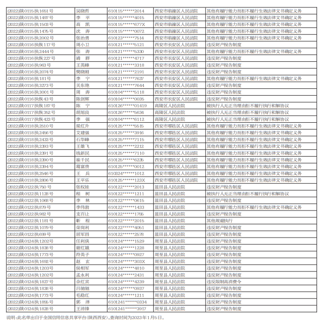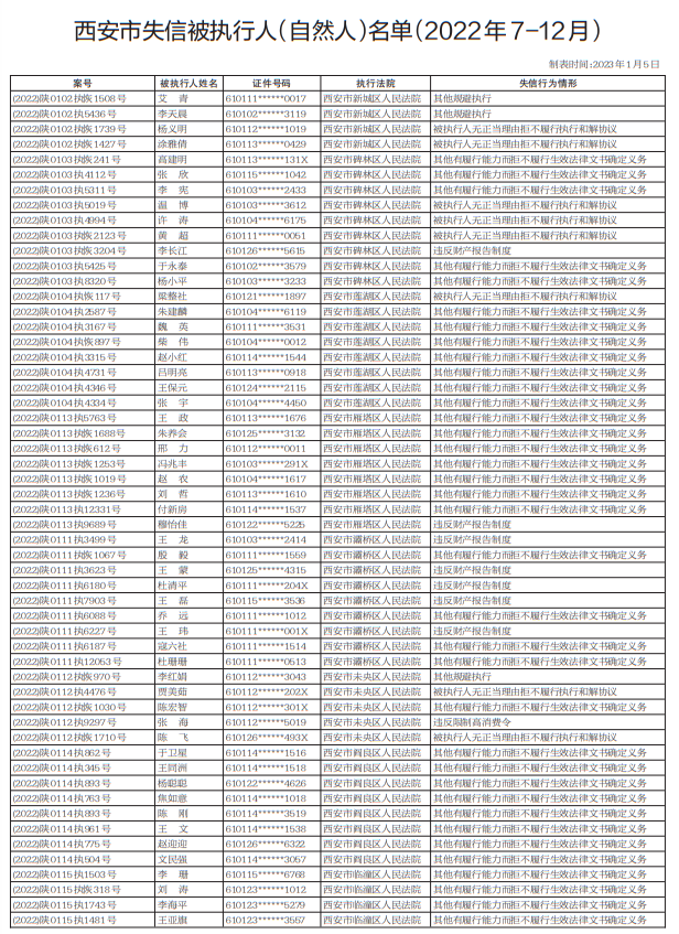 西安市委文明辦、西安市信用辦集中發(fā)布一批失信被執(zhí)行人(自然人)名單