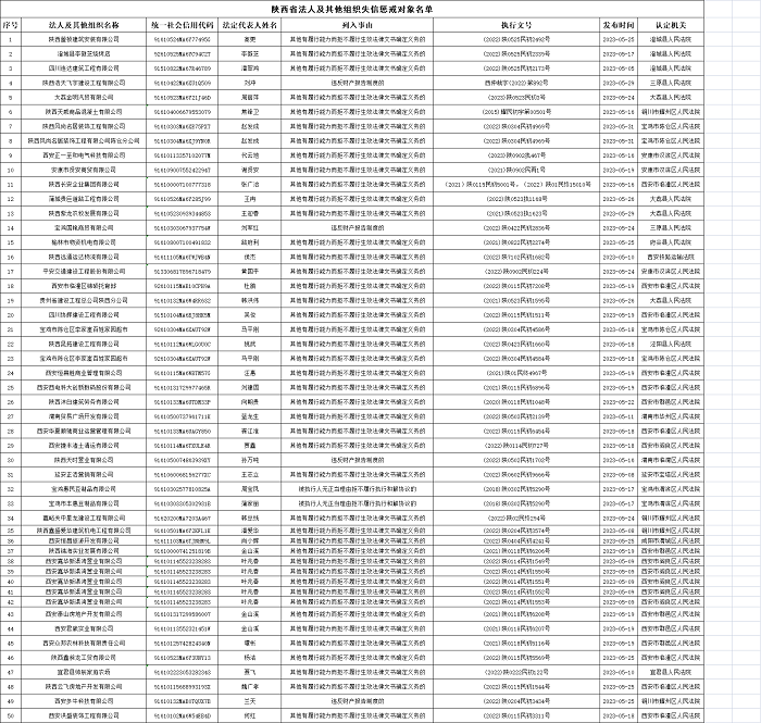 陜西省法人及其他組織失信懲戒對(duì)象名單