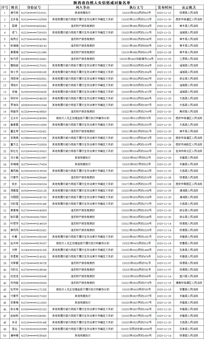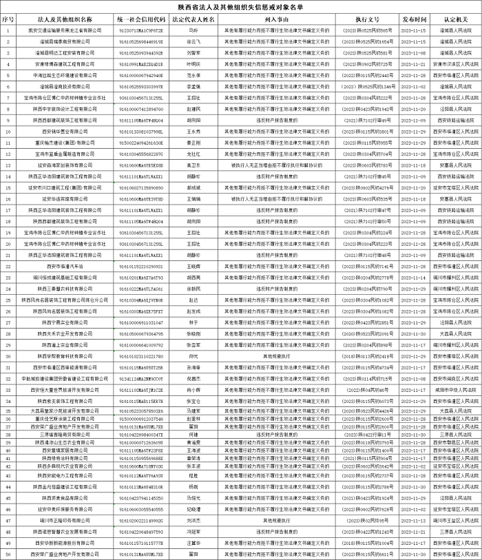 陜西省法人及其他組織失信懲戒對(duì)象名單