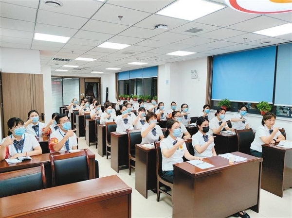 新城區(qū)行政審批局工作人員正在接受手語培訓(xùn)。
