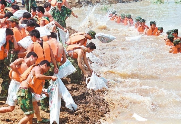 這是一場真正意義上的人民戰(zhàn)爭。人民子弟兵共投入30多萬人,地方黨委和政府組織調(diào)動(dòng)了800多萬干部群眾參加抗洪搶險(xiǎn)……投入人員之眾、物資之多,為人類抗洪史上所罕見。