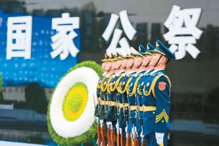 12月13日,寒冬凜冽,南京迎來(lái)第十二個(gè)國(guó)家公祭日。上午10時(shí),國(guó)家公祭儀式在侵華日軍南京大屠殺遇難同胞紀(jì)念館集會(huì)廣場(chǎng)莊嚴(yán)舉行,國(guó)旗半垂,哀樂低回。約8000名胸佩白花的各界代表垂首默立,防空警報(bào)撕裂長(zhǎng)空,將人們的思緒帶回88年前的黑暗歲月——30萬(wàn)同胞慘遭殺戮,古都南京滿目瘡痍。