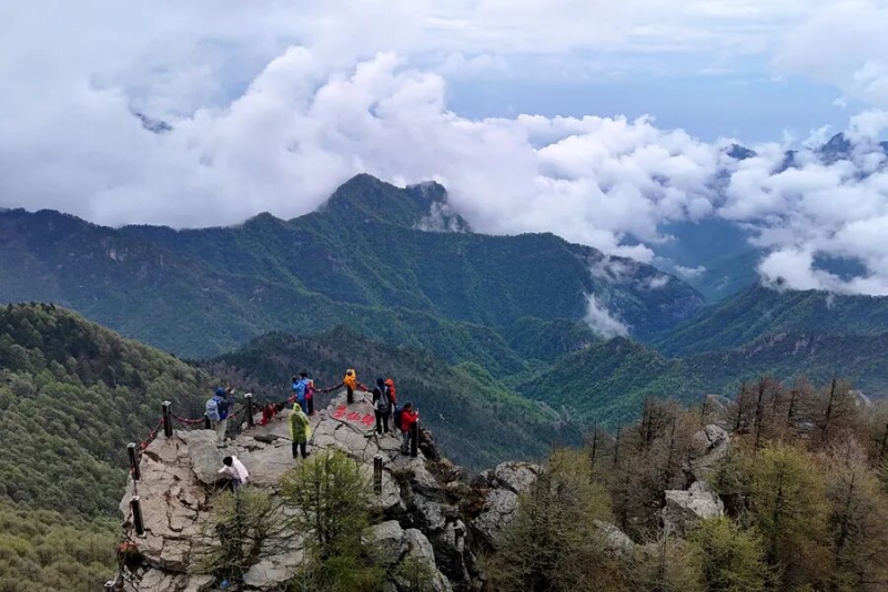 ??游客在位于陜西寶雞的秦嶺太白山景區(qū)游覽(2025年5月27日攝)。新華社記者 鄒競一 攝