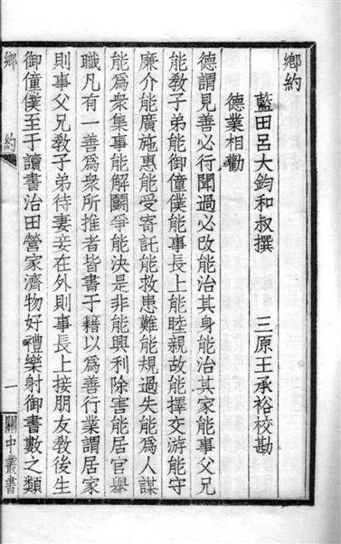 呂氏兄弟基于鄉(xiāng)村安定、鄉(xiāng)鄰和睦的訴求,制定了以道德教化為主的《呂氏鄉(xiāng)約》,通過(guò)整合社會(huì)秩序去惡揚(yáng)善、彰顯正義、淳化風(fēng)俗、提升道德,以此感化鄉(xiāng)里,移風(fēng)易俗。這是我國(guó)歷史上第一部成文的鄉(xiāng)約?!暗聵I(yè)相勸,過(guò)失相規(guī),禮俗相交,患難相恤”是《呂氏鄉(xiāng)約》的主旨內(nèi)容。