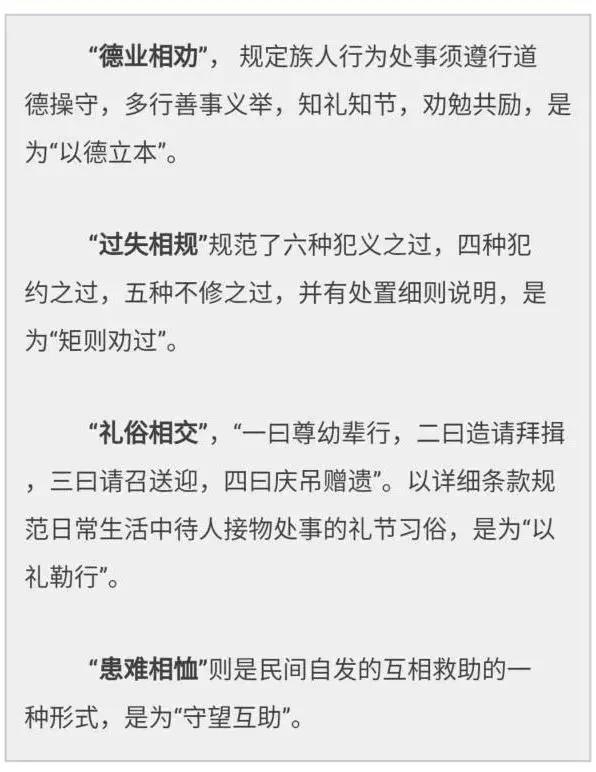 國(guó)有國(guó)法,家有家規(guī)。在中國(guó)古代,介于國(guó)法和家規(guī)之間的還有鄉(xiāng)約。鄉(xiāng)約有一套入約民眾必須遵守的生活規(guī)則,這套規(guī)則鼓勵(lì)人們崇禮向善、守望相助。