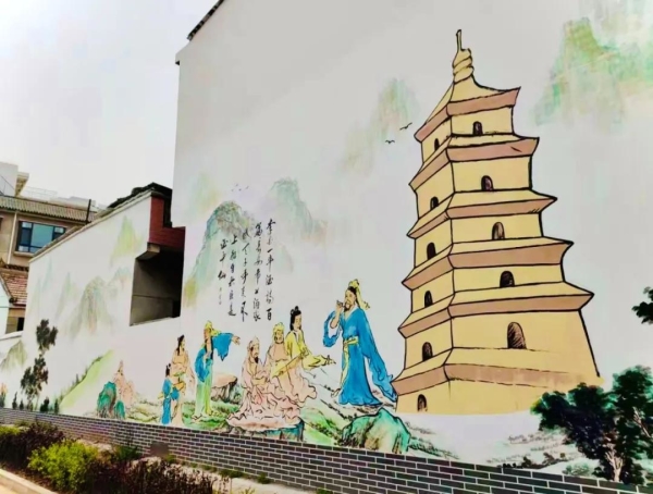 走進位于白鹿原上的鮑旗寨村,新鮮空氣撲鼻而來,沁人心脾。一排排整齊的農(nóng)家小院,平坦干凈的鄉(xiāng)村街道,道路兩旁花圃里匠心獨具的銅雕和房屋外墻的大幅水彩墻畫等獨特的文化景觀設計都讓人流連忘返。竹林密布曲徑通幽的小廣場,村民三五閑聊拉家常,讓來到這里的人們仿佛步入了一幅世外桃源的美麗畫卷?!叭绻皇桥既换貋硖酵辖址?,真不敢相信原來陳舊雜亂的村莊發(fā)生了翻天覆地的變化?!毖κ绶颊f。